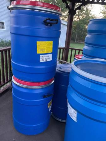 White Polyethylene Food Grade Barrels Available for Many Uses 55 Gallon and 39 Gallon only now.