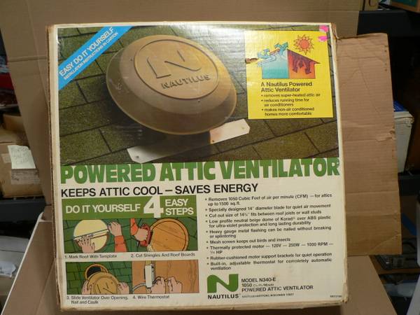 Here is a New in Box Nautilus Powered Attic Ventilator with Adjustable Thermostat.
