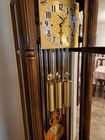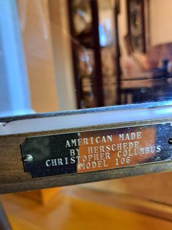 My Father bought this clock new 52 years ago. He just moved to a Senior housing apartment and doesn't have room for it. It is in excellent condition. The following is a description by the site herschedehallclocks.com/clocks "An extremely handsome hall clock of Italian design. Named for the intrepid Italian who discovered America. The Christopher Columbus was perhaps the most unique style of all Herschede Hall Clocks; reason being is the base design. It stands stately and decorative in the home. Fine precious Appalachian Cherry Wood was used to make this cabinet which produces a beautiful contrast of finish and book matched wood. Beveled glass surrounds all three sides which allows for view of full size chime tubes made of finely polished nickel-plated brass or golden washed. This adds immeasurably to the beauty of the clock. Dial is delicately hand pierced and hand engraved. 9 tube, with full lyre pendulum and triple chime movement. Available in both light and dark Cherry Wood and nickel chrome-plated or golden washed chime tubes. This clock speaks in cathedral tones and is the central attention of the home".