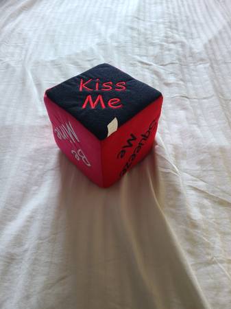 New with box, never used. 5" dice. Great gift for anniversaries, holidays. Hug me I'm yours Red hot Kiss me Squeeze me Be mine