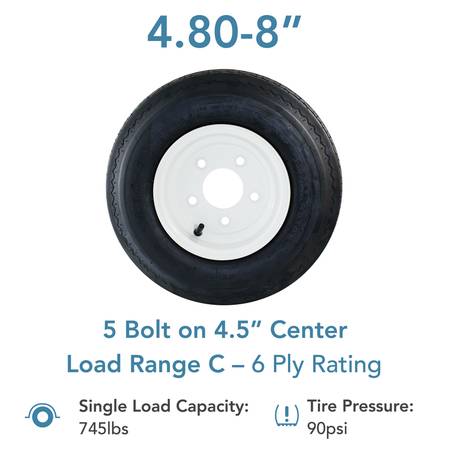 TIRE WITH RIM 4.80-8'' 90PSI.745LBS ...............................2 FOR $ 62 ...............................3 FOR $ 90 ...............................6 FOR $ 174 AVAILABLE 12 IF INTERESTED CALL...