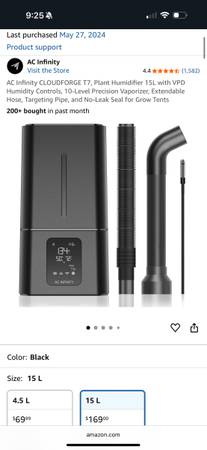 Humidifier - AC Infinity Cloudforge T7 - 15 Liter capacity. Open box, like new, tested but not used. If you have any questions, just ask!