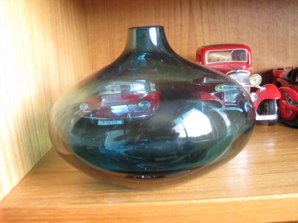 Home decor bottle/vase Teal color glass - about 3.5" tall Use as decor or bud vase Like new condition - still has label Asking $5.00 Phone calls ONLY Call between 9AM and 9PM