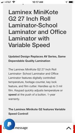 Laminex MiniKote G2 27 Inch Roll Laminator-School Laminator and Office Variable Speed Item #201595R Voltage: 120 60HZ $1,299 OBO