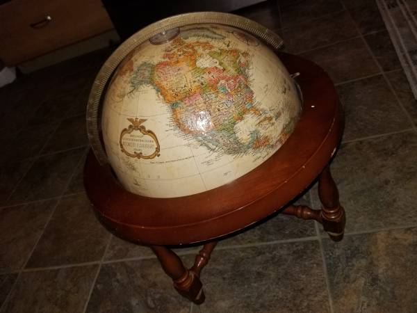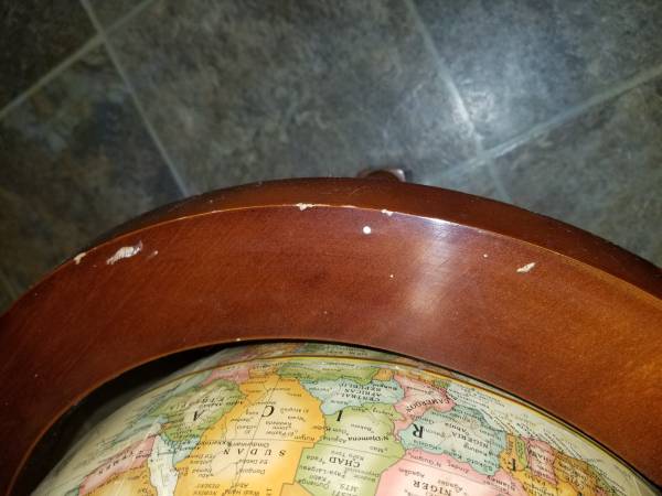 In good overall condition. The top metal piece broke off in 2 sectionS but have the pieces. Some marks and paint spot on wood. Otherwise still nice condition.