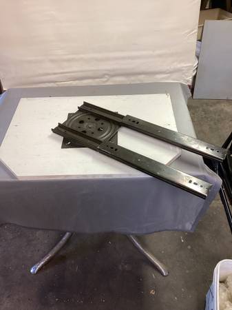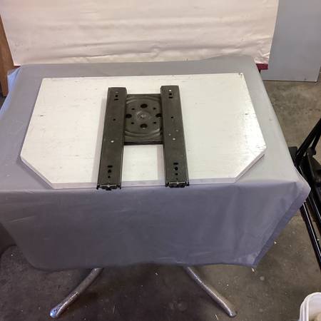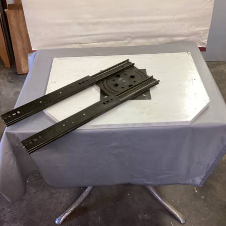 Swivel base Wood shelf = 24 x 17 x 3/4 Fully extends to 26-1/2”