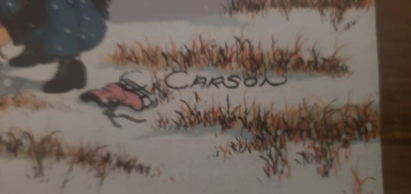 Vintage Circa 1990's artist C. Carson Amish Sledding - Skating Theme oil painting. This is an oil certified #133466, signed, and unframed 8 in x 10 in.