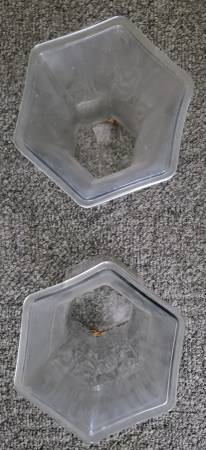 A pair of Hexagonal Very Elegant tall clear glass vases. This set is perfect for weddings, showers, special occasion floral decorations, home decor - use your creativity!