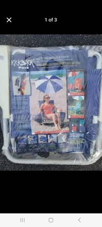 All in one outdoor chair folds into a backpack and has two coolers and a umbrella. $55obo. New never used