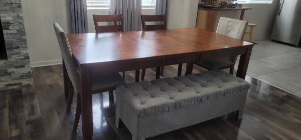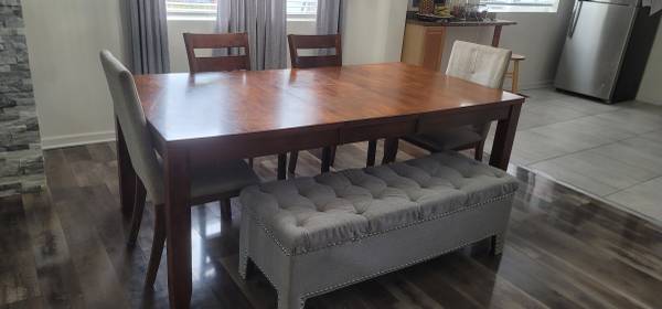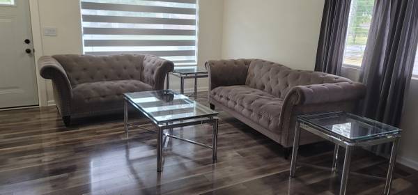 Well maintained Center glass table and 2 corner glass tables, along with 2 gray couches decent condition. Plus the beatyfull looks like new colection furniture great condition. 6 pc dining table...