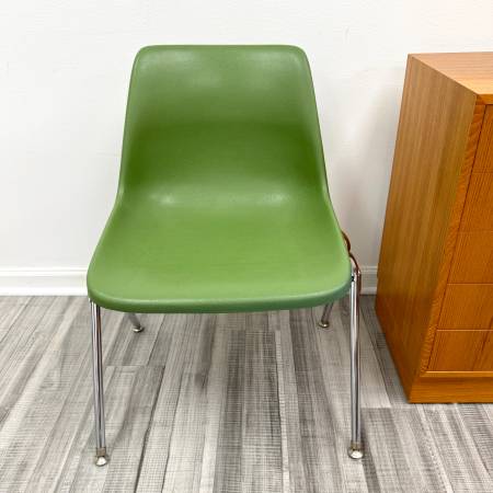 This vintage St. Charles Howell chair has a shell design by Charles Furey. A classic design with a comfortable sit and beautiful chrome base. Lightweight and easily used as an accent chair or desk...