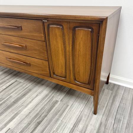 Overall the credenza is in excellent vintage condition with vintage wear as pictured, including a small repair made to the bottom handle.