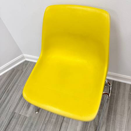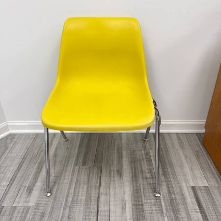This vintage yellow St. Charles Howell chair has a shell design by Charles Furey. A classic design with a comfortable sit and beautiful chrome base. Lightweight and easily used as an accent chair or...