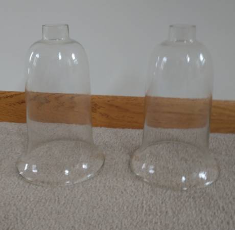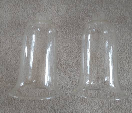 Glass shades (2) for light fixtures. Never used . New in box. size - 9 1/2H x 6W. Fitter size is 1 1/4. No text messages. Call for info..