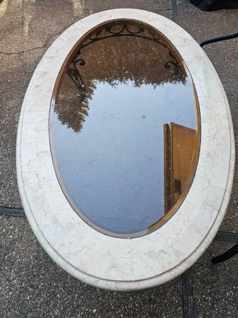 Used, in excellent condition oval coffee table with natural stone and glass top. Asking for 155.00/OBO - cash only. If you are interesting text me at Thanks for your time I will not respond to all...