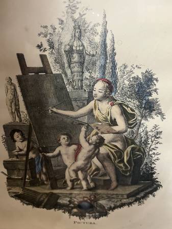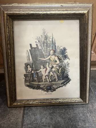 Vintage Colored Mythical Figures Wall Art in a glass frame in good condition. Dimensions: 14" X 13" A great accent piece on any room- $65