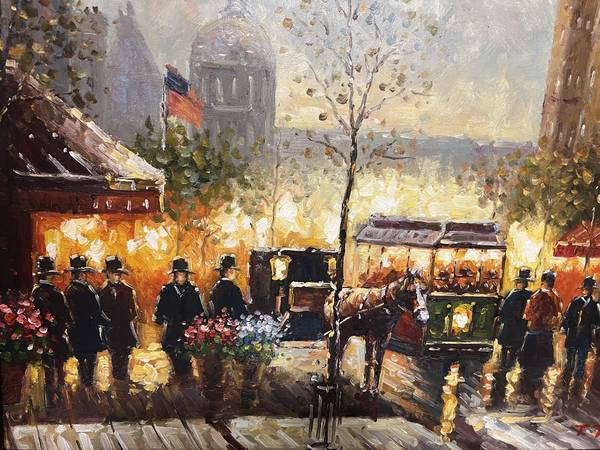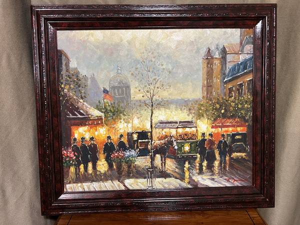 Gorgeous Horse Carriage Oil Painting with elegant Frame in great condition. Dimensions: 30" X 26" A great accent piece on any room- $85