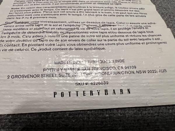 Pottery Barn Hand Tufted Wool Area Rug with elegant pattern in great condiiton. Dimensions: 72" X 48" A great accent piece on any room- $185