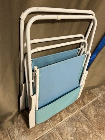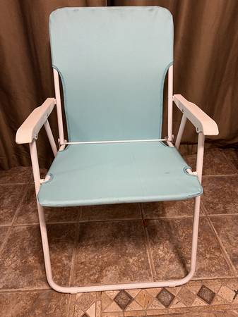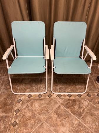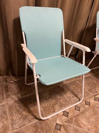 Two Matching Space Saver Blue Folding Chair. Can be used as patio chair, side chair in great condition- $45 price is for both