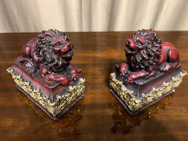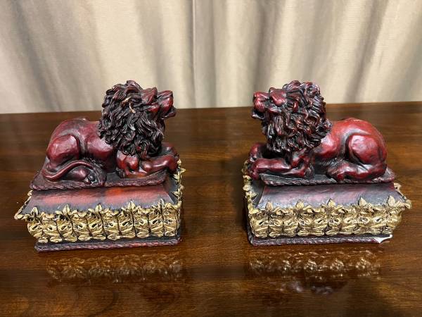 Two Matching Ornate Lion Statue in good condition. A great accent piece on any room- $125 price is for both