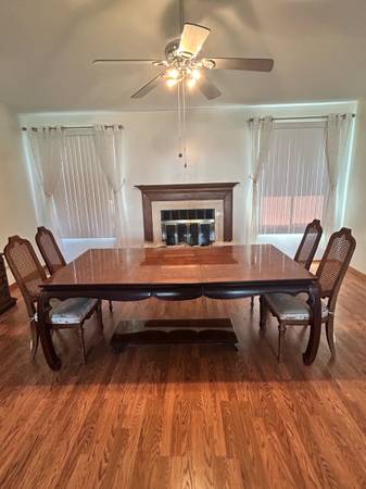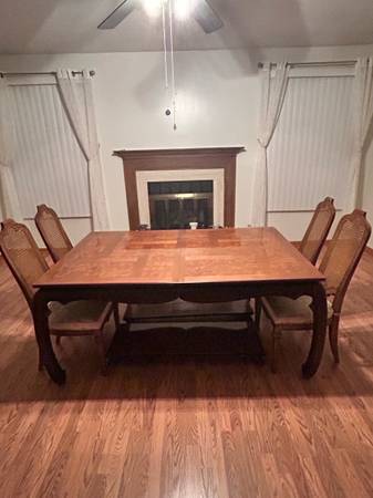 Beautiful vintage all wood- table and 4 chairs and china cabinet. (Comes with 2 leafs) 68”x44” table