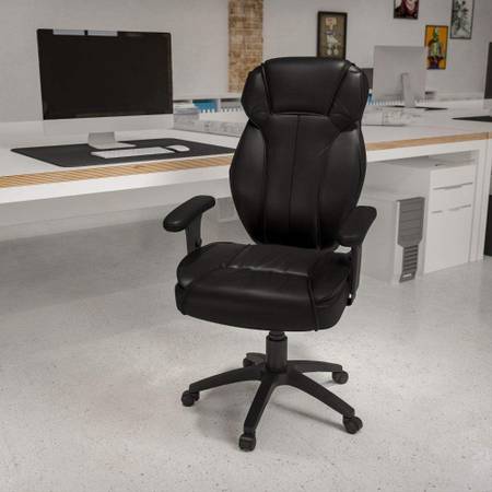 Flash Furniture Hansel High Back Black LeatherSoft Multifunction Executive Swivel Ergonomic Office Chair with Lumbar Support Knob with Arms
