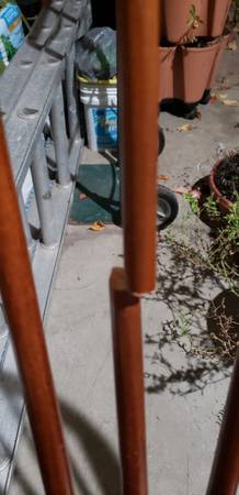 Dining table with an additional leaf to extend the size. 2 armed chairs, 4 regular chairs