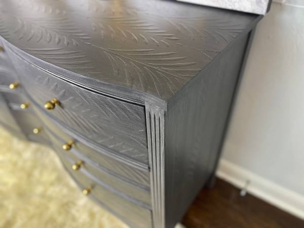 Beautiful Dixie dresser redone in modern gray brushed finish. Featuring 2 layers of primer, 2 layers of paint, and 3 layers of polycrylic for extra protection and durability.