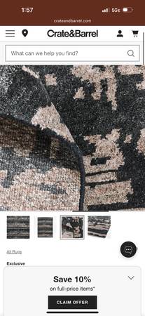 Never used beautiful Crate and Barrel rug. 5 star reviews on Crate site.