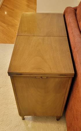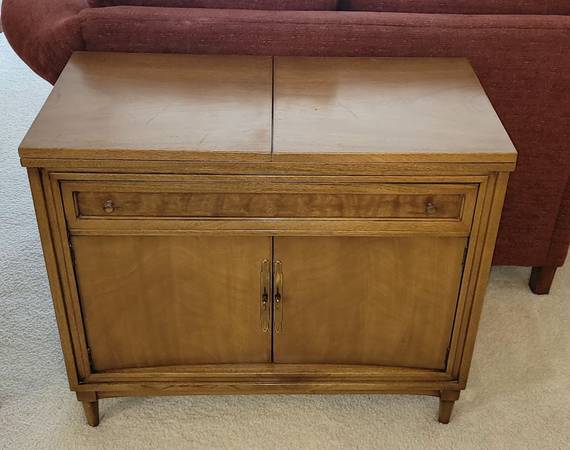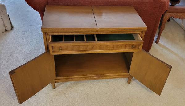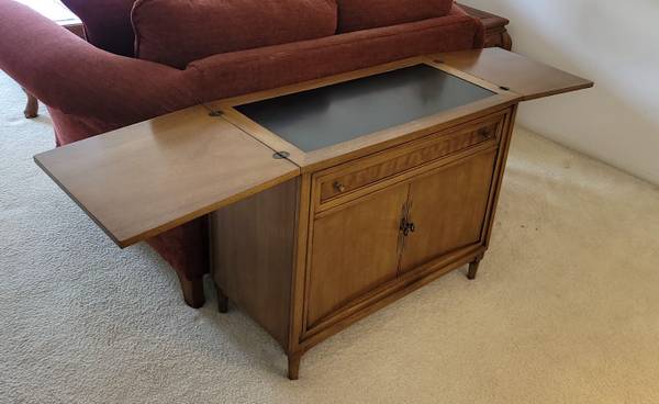 This piece is super-cool! With a felt-lined drawer and ample storage below, this unit is compact but provides additional serving space when needed via the convenient expanding top! Clean, from a...