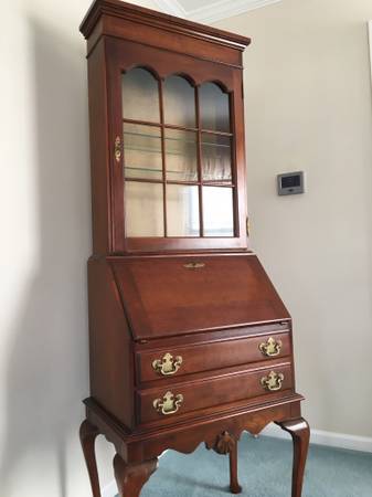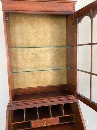 Solid Cherry/Mahogany Secretary Desk 25"W x 17"D x 71"H Lighted Upper Cabinet, Adjustable shelves Separated 2 pieces. Excellent Condition. it is available as long as the post is up.