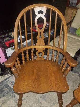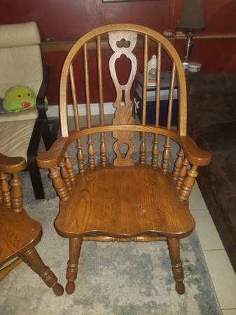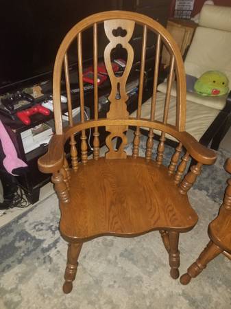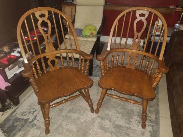 Vintage Solid Oak Windsor 2 Chairs w/Arm Rests Richardson Brothers Co. Beautiful vintage, high end, solid wood chairs! In good solid condition. Some light marks from normal use but fully in tack and...
