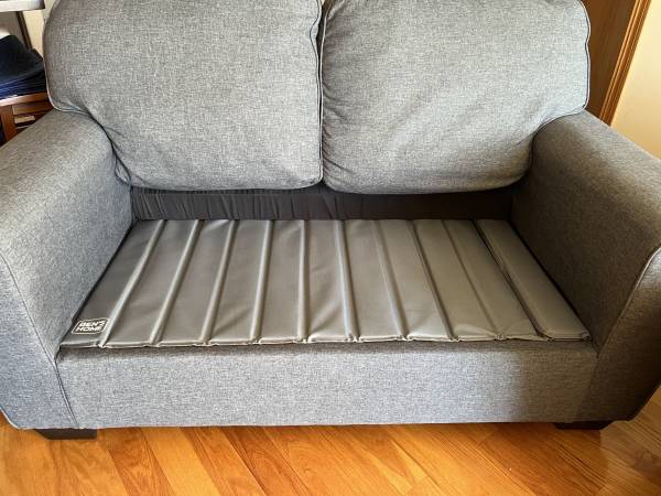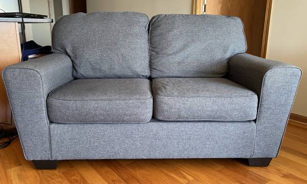 Loveseat Color is gray, with a faint hint of blue. You must haul it yourself. Includes supporting boards (see second photo) to protect against sagging. *****To filter out Spam/junk/bots, tell what...