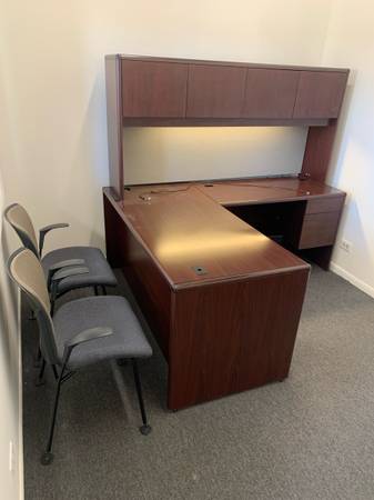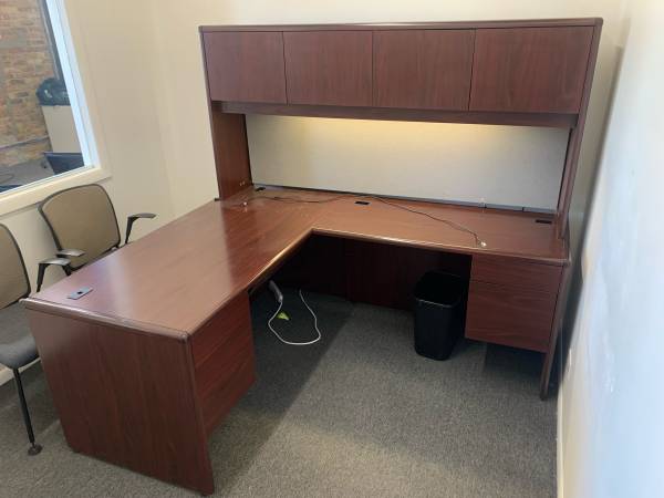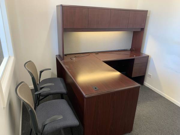 Hon 6x6.5’ executive desk is in good condition. 3 units available, 2 with upper hutch, 1 with out ($350) all have matching 3’ lateral file (not pictured) includes 2 of the pictured sitag guest chairs per unit. Everything works as it should. Price is per unit picked up in Wauconda, will separate. Can deliver and set up for an extra fee. Face to face CASH deals are preferred. I can accept credit cards and PayPal, please inquire. I also have lots of other office furniture, please copy my phone number how it is listed below and paste it in the search window to see the other items I have!