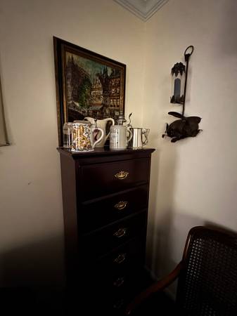Drexel Heritage Hollywood Regency Chinoiserie hand-painted bar cabinet. This vintage piece also has the matching mirror!!! several Lladros asian art high end clothing men’s and women’s beautiful christmas items nippon vtg glass fenton lennox gorgeous vtg linens all holiday asian items Koi asian planter mcm side bar old new kitchen items tools toys some great jewelry books bibles office items furniture much too much to mention Fri 10am-? Sat 8am-? Sun 9am-?