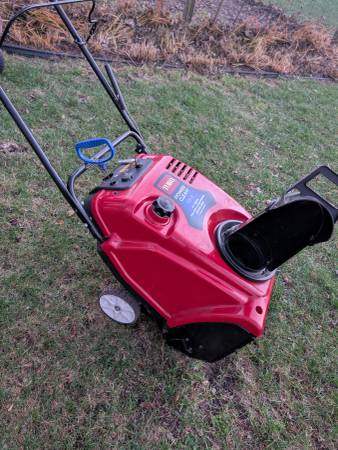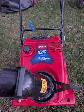 Toro 21 inch 7hp single stage snowblower. Has not been used much and is in great condition. Starts and runs well. Electric start and runs on straight gas. Cash only.