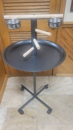 PARROT CAGE = W 24'' = 22''D = H 64'' = TO TOP OF PERCH NEW BIRD PERCH= ASKING $80 = 45'' TALL = ROUND TRAY 24'' = NEVER USED = PAID $160 NEW ALSO, PLASTIC BIRD TRANSPORT CAGE, ASKING = $25 PICKED...