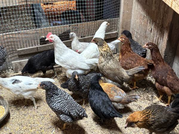 14 week old assorted female chickens. They will start laying eggs in January. Approximately 160-240 Eggs/Year