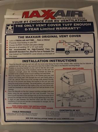 MaxxAir Trailer Roof Vent Cover Fits standard 14 x 14 inch roof vents. Hardware included. New. Never Used.