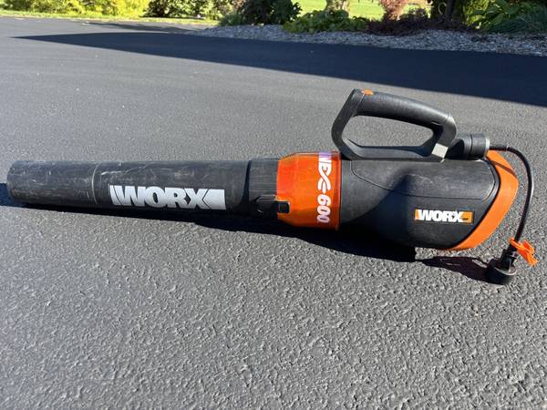 Used WORX 12 amp Electric Turbine 600 Leaf Blower Model # WG520 12 A 120V 320 CFM airflow and 600CFM airflow 60 mph air speed and 110 mph air speed Works Great If interested please call Please Do...