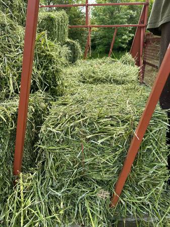 First cut alfalfa and clover grass mix $5.00/ bale. About 300 bales available. Second and third cut alfalfa clover grass mix hay $6.00 per bale 500 bales. No rain.