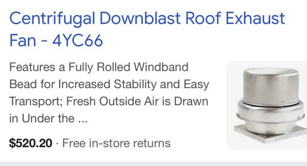 NEW EXHAUST FAN DIRECT DRIVE. S / PH 115 VOLTS 700 CFM FOR INFO CALL THANKS