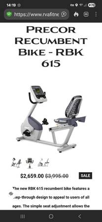 Precor RBK 615 Recumbent Exercise Bike - $1,400 (CARY)