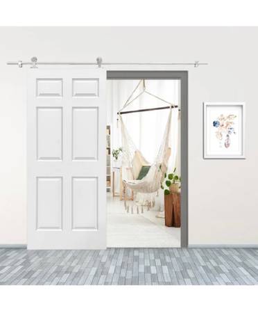 OPEN BOX. Item is brand new and has not been installed. Everything you need to install the door is included.
