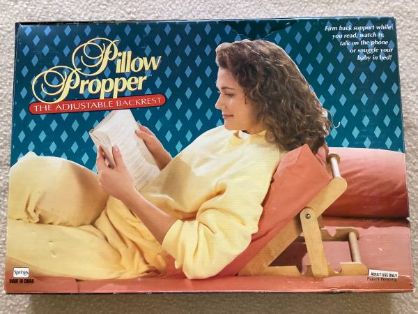 Vintage wooden Pillow Propper is in perfect, unused condition. It has 3 adjustable settings for your pillow and can be used on a bed, couch or floor to support your back.