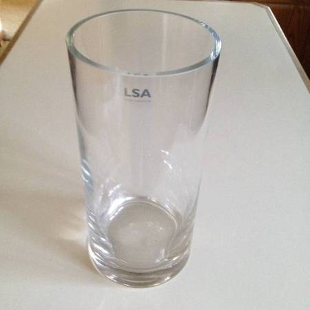 Vase / Candleholder - Manufacturer: LSA International - Measures 11" High And 5" Across (28cm X 13cm) - Clear Glass With Thick Base and Rim