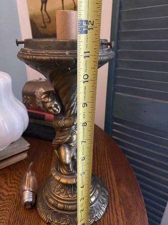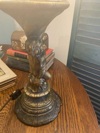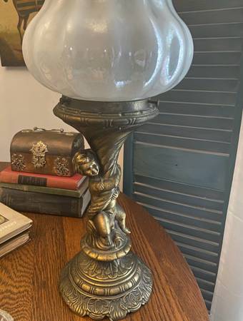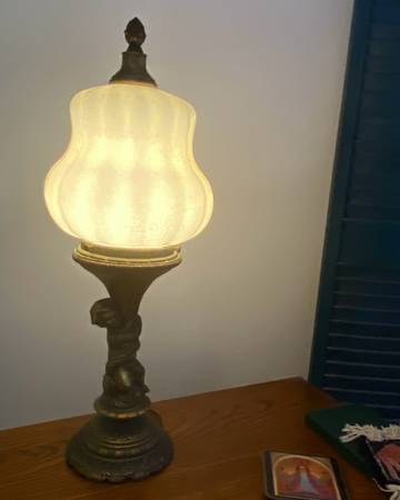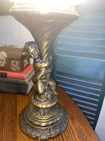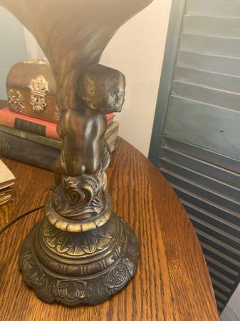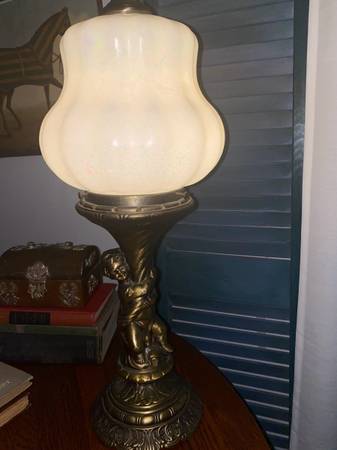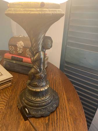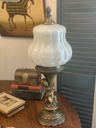 Vintage Victorian French Country Cottage Cherub Metal Base 21” Table Lamp.