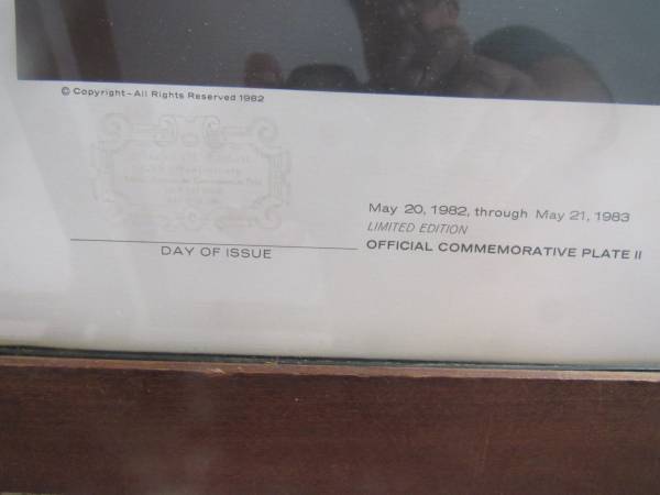 Amelia Earhardt 50 th. Ann. Print. Official Commemorative Plate #2. First Woman to Fly over the Atlantic Ocean. May 20-21, 1932. May 20-21, 1982. 27 x 38 1/2 inches wide. Matches the Print I have...