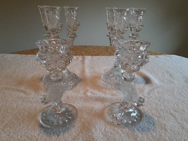 Hofbauer Byrdes pattern Crystal - candle holders - $15 each Single - 7"H will hold candle 1.5" Triple - 9"H will hold candle 1.25" 1057493-105849 Additional crystal pieces available