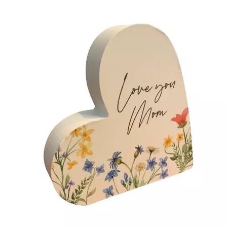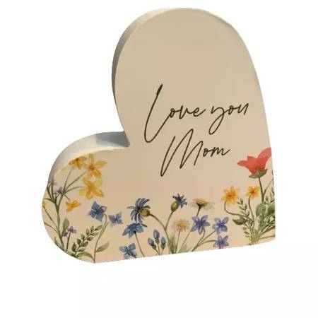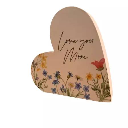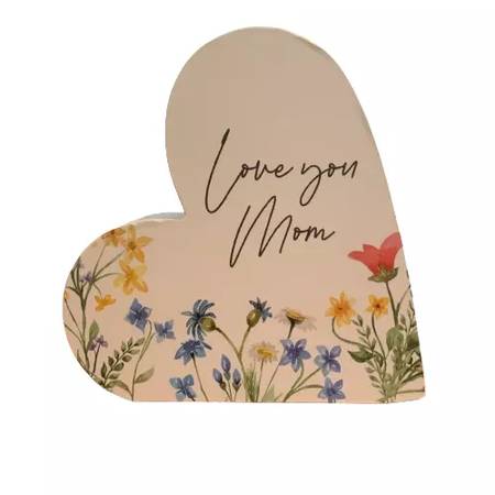 Up for sale Love You Mom Heart Shaped Wooden Standing Sign Floral Mothers Day Gift for Mom.